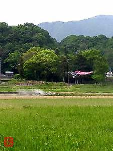 田畑の中に、こんもりとした森がある。