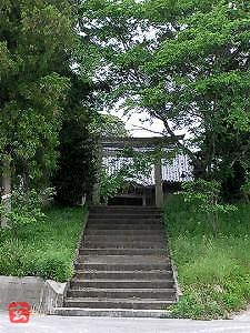 境内入口は南側。階段を上ると正面に社殿がある。