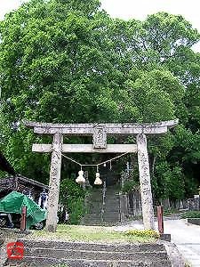 拝原交差点から少し西へ入ると、参道入口の鳥居が立つ。