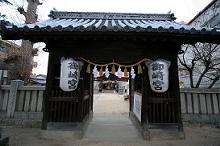 道路に面する鳥居と神門をくぐると
