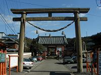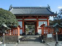 鳥居をくぐり、参道を進むと瓦葺の総門。