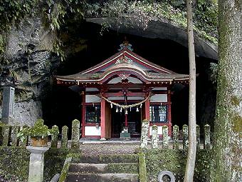 社殿は岩窟内に建てられていて面白い。