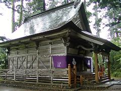 一段低く社殿がある ![]() | 拝殿、中に奥殿がある ![]() |
