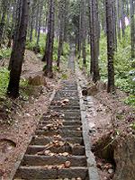 参拝後、長く急な階段を下る |