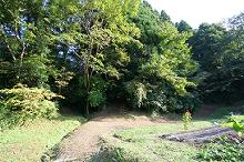 集落の奥にあって、民家の庭先を通って行く。