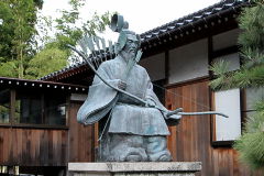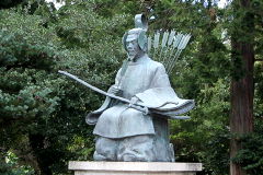 拝殿の前、左右に矢大臣(随神像、銅像だろうか)。
