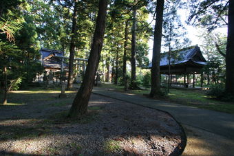 鳥居をくぐって境内に入り参道を進んで右手に曲がると正面に社殿。