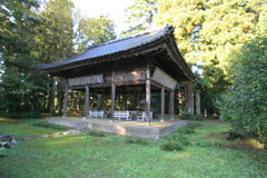 郷社城端神明宮 所在 富山県東礪波郡城端町一六六八 旧神明島 城端町南郊山田川沿い丘陵上に位し、土地高燥にして境内老杉鬱蒼、森厳自らなる神境である。 由緒 直海郷伊勢領御鎮座の大神宮を、天正二年今の宮地に御遷宮祀る。貞享二年社殿を再建、嘉永二年再修築奉る。明治二年村社、昭和二十年郷社に列格す。古来数多の奉納品が伝承され、大神明と呼称し、崇敬されている。 御祭神 天照皇大神(神明)誉田別命(八幡)天児屋根命(春日)の三柱を主神とし、相殿神として菅原大神(天神)別社妙義大神(妙義)を祀る。 ご縁起 ご奉斎する尊き神々の御名と、ご神徳を恐みて仰ぎ奉るに、 ・天照皇大神(神明さん)峻徳昂き、国家創世の皇祖神 ・誉田別命(八幡さん)聡明玄監深き、皇崇神 ・天児屋根命(春日さん)国家祭祀の司護神にて、氏祖神 相殿神として・菅原大神(天神さん)文芸勧学の守護神 妙義神社には・奥津比古神・奥津比売命(妙義さん)火災除の守護神 五柱の神々を併せ祀りて、(大神明)(郷社神明宮)と称え奉り、崇め奉るなり。 往古よりその祭祀奉斎をみるに、貞享二年社殿を再建、元文四年神輿堂絵馬堂を建立、嘉永二年社殿のご造営、昭和四十八年中殿斎館を建立、百年又は紀記年毎のご遷座式年祭、奉祝算賀祭を仕奉るなり。 二拝二拍手一拝の奉拝は、諸願悉々くご神意にふれ、ご恩頼を仰ぎ奉り、忝なみ奉りて、ご縁起申し上げるなり。 −『平成祭データ』− |