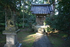 境内に朝日が射しこんで、木々の影がまだらになり写真としては良い出来ではないが、