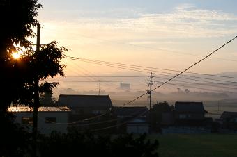 社域から見下ろす町は朝霧の中 |