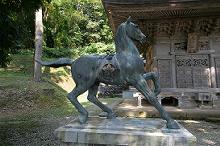 拝殿前の神馬像に桜の紋が付けられていたので