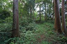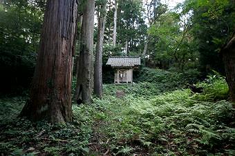 拝殿の右手から雑草の茂った山道を登って行くと、