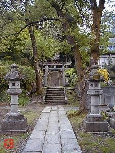 参道を進み、階段を登ると、途中に赤い鳥居がある。
