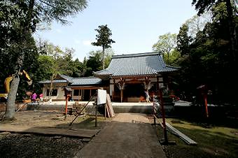 正面に新しい拝殿があるが、境内では工事中だった。