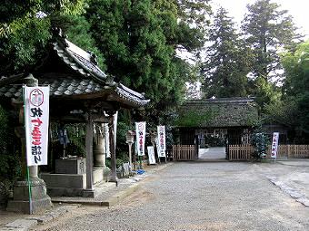 神門をくぐると境内。社務所や社殿は西向きだ。