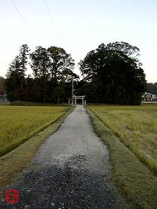 近鉄猪田道駅のそば、422号線と近鉄伊賀線に挟まれた田の中の森に鎮座。