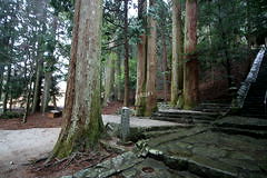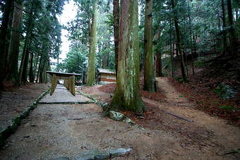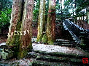 夫婦杉と呼ばれる、根元で繋がった2本の杉の巨木が二組あり、歴史の深さを実感する。