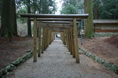 鳥居をくぐり神橋を渡ると、参道は左手(南)に折れ、川沿いの道には木製の鳥居が並んでいる。