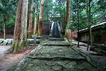 そこで、川を背にして、参道を右手(西)へ進むと参道階段が上に延びており、