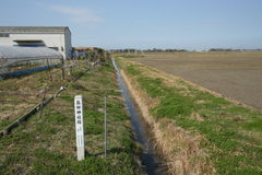 田圃の脇に「畠田神社跡」と記された標柱が立っている。