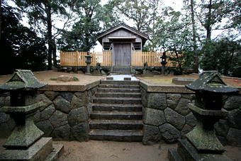 拝殿は瓦葺で、拝殿の後方、一段高い石垣の上に垣に囲まれて本殿がある。