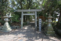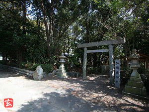 境内入口は西側、社域の杜に入ると左手に石造の鳥居が立っており、