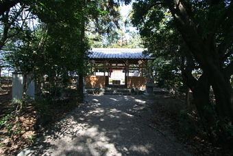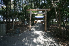 鳥居をくぐり参道を北上すると木造の鳥居があり、参道の奥に拝殿。