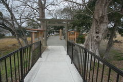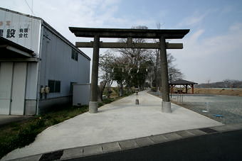 鳥居をくぐり参道を進み、橋を渡ると、土手のような細長い境内。