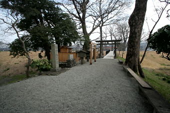 度会橋西詰から500mほど南、宮川の右岸にある宮川堤の南端に境内がある。