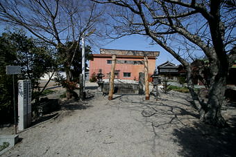 社地は南向きで鳥居が立っており、鳥居の奥に