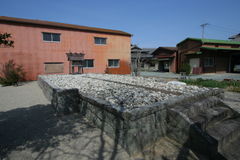 その奥の石台の上に玉砂利が敷き詰められ、石台の北端に祠が一つ祀られている。