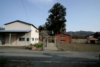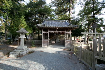 421号線から北へ入った場所。小学校の北側にあり、櫛田川の南側に南向きの境内がある。