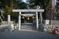鳥居の正面に拝殿があり、拝殿の後方、瑞垣の中に神明造の本殿がある。