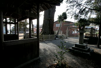 鳥居をくぐると右手に、境内の外からも見えた、樹高35mの大きな御神木。
