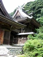 物部神社(石見一宮) 旧国幣小社 大田市川合町川合八百山 山陰本線 石見大田駅より四粁 祭神 宇摩志麻遅命(可美真手命) 例祭 一〇月九日 神紋 日負鶴 本殿 春日造変態 四三拝 境内 一五、七五六坪 攝末杜 一七社 宝物 高麗狗、曲玉、時雨鉢、刀剣(文化財)、琴 琵琶鎧等教百点 氏子 五百戸 崇敬者 五万人 由緒沿革 継体天皇八年勅命により神殿創建、祭神宇摩志麻遅命は物部氏の始祖なり。神武天皇大倭国に御遷都の時大功を表し給いて橿原の朝延を守護し給う。天皇其功を賞で韴霊神剣(石上神宮奉斎)を腸う。祭神も又天祖より拝承せる一〇種の神宝を奉り給う。斯くて辛酉年正月朔日天皇畝傍橿原宮にて天位に即かせ給う時、祭神は十種神宝を安置し神楯を竪て斎い奉る。此年二月朔日十種神宝を斎きて天皇皇后の御為に御魂を鎮め奉り寿祚を請い祈ぎ奉り給う(今宮中に於て一一月二二日夜行はせらるる鎮魂察茲に始まる)。後、物部の軍兵を率い尾張、美濃、越国等の諸豪族を平定し更に播磨、丹波を経て石見に入り八百山の麓に宮居を築き此地に薨去す、御神墓は社の背の八百山にあり。往古当社は天文年間は一萬三千石の社領なりしが天正年間に至り河合郷二千石に滅じ更に徳川年間に至り三百石の朱印地となる、明治四年国幣小社に列す。(神社本庁別表神社) −『神社名鑑』− 物部大明神 安濃郡(大田市川合町川合)にある。 祭神一座 宇摩志間知(可美真手)命(以上『国花記』による) ○饒速日尊〔天照大神の曾孫である〕は御炊屋媛(登美夜毘売)〔長髄彦(登美彦)の妹である〕を娶り遂に子を生み熟美真味命という。地神三代を経て神武天皇に仕えた。時に叔父の長髄彦は神武を廃して熟美真味を立てようとしたが、叔父の謀逆に従わず官軍に合力した。天皇はその忠を喜び(布都御霊の)神剣を授けた。命はまた先に饒速日尊から授かった天璽の瑞宝十種の神物を奉献した。常に殿内に近く宿したので足尼〔足尼は官職の名。天皇を輔けて政を修める、今の大臣の如きものである〕といった。また、内の物部を率いて矛楯を立て内裏を警固した〔今武将を物部と称するのはここに始まる〕。また、東夷を征して大功があった。それで熱美真味命と天(日方)奇日方命の二人を申食国政大夫〔今の大連大臣である〕とした。天皇が崩じてのち三年で大和金峯山に入ったというo(『日本書紀』にあり)〔当国に祭る年記は詳らかでない。〕貞観十七年(八七五)十月、神階正五位上 ○天奇日方命〔素盞鳴尊の曾孫、大己貴命の孫〕は事代主命の長子である。性質は叡明仁恕で 神武天皇に事え、申食国政大夫となって天皇を助けた。悪神を治め夷賊を平らげた功功績は大 へん大きい。熟美味命と二人は今の左右大臣のようである。 −『和漢三才図会』− |