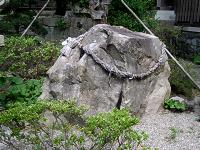 砂金を含んでいるらしい富金石 ![]() | 祭神の腰掛岩 ![]() |