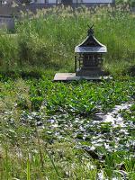 社前の道を挟んだ池の中に、もう一つの小祠。