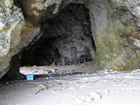 静之窟は『万葉集』巻二に「大なむち、 少名彦のいましけむ志都の岩室は幾代経ぬ らむ」(生石村主真人)と歌われ、大巳貴命、少名彦命の二神が 国土経営の際に 仮宮とされた神話の洞窟である。 江戸初期まで洞窟の前には滝の前千軒と いう集落があったが、明暦二年(一六五六 年)四月の大津波で一瞬にして海中に没し たと伝えられる。 窟内は奥行き四十五メートル、横幅三十 メートル、高さ十五メートルほどあり、中 央に万葉歌碑が建てられている。 近くの垂水集落には、大巳貴命、少名彦命 の二神を祀る静間神社がある。 −案内板より− 大田市指定天然記念物 静之窟 一所