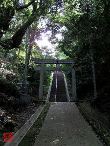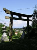 北へ100mほど小道を歩くと、境内入口の鳥居が立っている。