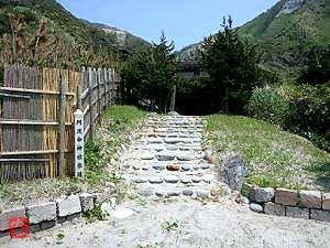 境内の右手に、丸い石を積んで階段にした場所がある。