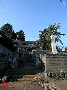 坂道を登る参道があり、参道途中に鳥居が建っている。