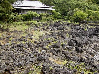 楽寿園は、富士山による溶岩流の末端にあり、溶岩地形。