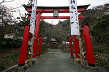 駐車場に車を止め、赤い鳥居をくぐって参道を進む。