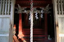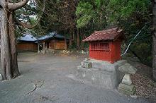 正面に社殿があり、社殿の中に赤い本殿が鎮座している。