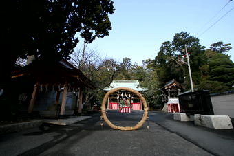 参拝は正月三日の朝。年末の大祓の茅の輪だろう。