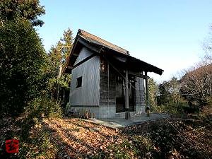 山道を登りつめた場所に、赤い屋根の祠が見え、