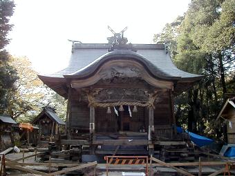 社殿の修築中だが、この日は日曜で無人。日曜で良かった。