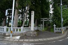 交差点隅に「郷社 白山別宮神社」と刻まれた社号標が建っている。