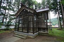 拝殿左前に流造の境内社があり、右手にお堂のような祠がある。