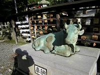 拝殿の前には、牛の像があるが、